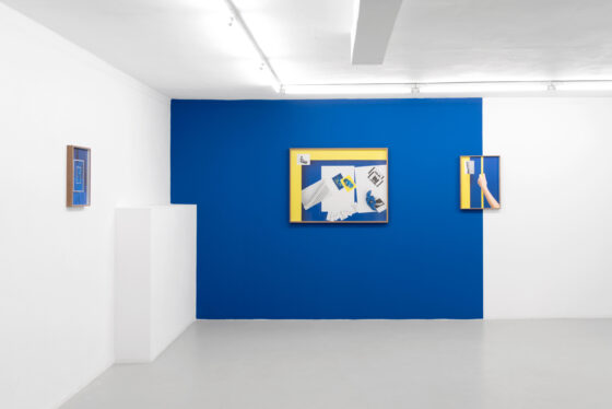 Mit dem Medium der Farbe werden die teils kuriosen architektonischen Besonderheiten des Raums hervorgehoben, dessen skulpturale Aspekte betont und gleichsam „benutzt“, um die zweidimensionalen Werke in eine dritte Dimension zu überführen. In Umkehrung erfahren innerhalb der Arbeiten lose verteilte dreidimensionale Versatzstücke in der anschließenden Überführung ins Bild eine Rückbindung auf die Fläche. In den Bildern finden sich mit penibelster Sorgfalt zu scheinbar maximaler Zufälligkeit arrangierte plastische Formen, Screenshots, Fotoreproduktionen, flache wie gerollte Papierbögen, die innerhalb des Bildraums wiederum mit sorgfältig austarierten Farbsetzungen in eine Art Display eingefügt sind. Zugrunde liegt diesen Arbeiten eine perfektionistische Detailplanung, ein minutiös durchdachter Bildaufbau über Wochen im Studio, um am Ende eine möglichst beiläufige und spontane Wirkung zu erzielen. Bei näherer Betrachtung lösen sich dabei alle vermeintlich festen räumlichen wie inhaltlichen Bedeutungsebenen auf und es offenbart sich eine inhaltliche Vielschichtigkeit in den Bildern, die gängige Verortungen und Vereinnahmungen insbesondere im Kontext musealer Setzungen und didaktischer Erklärungsmuster infrage stellt: Welche Mechanismen liegen der Konstruktion von Bildern generell und der eigenen künstlerischen Bildgenese zugrunde?